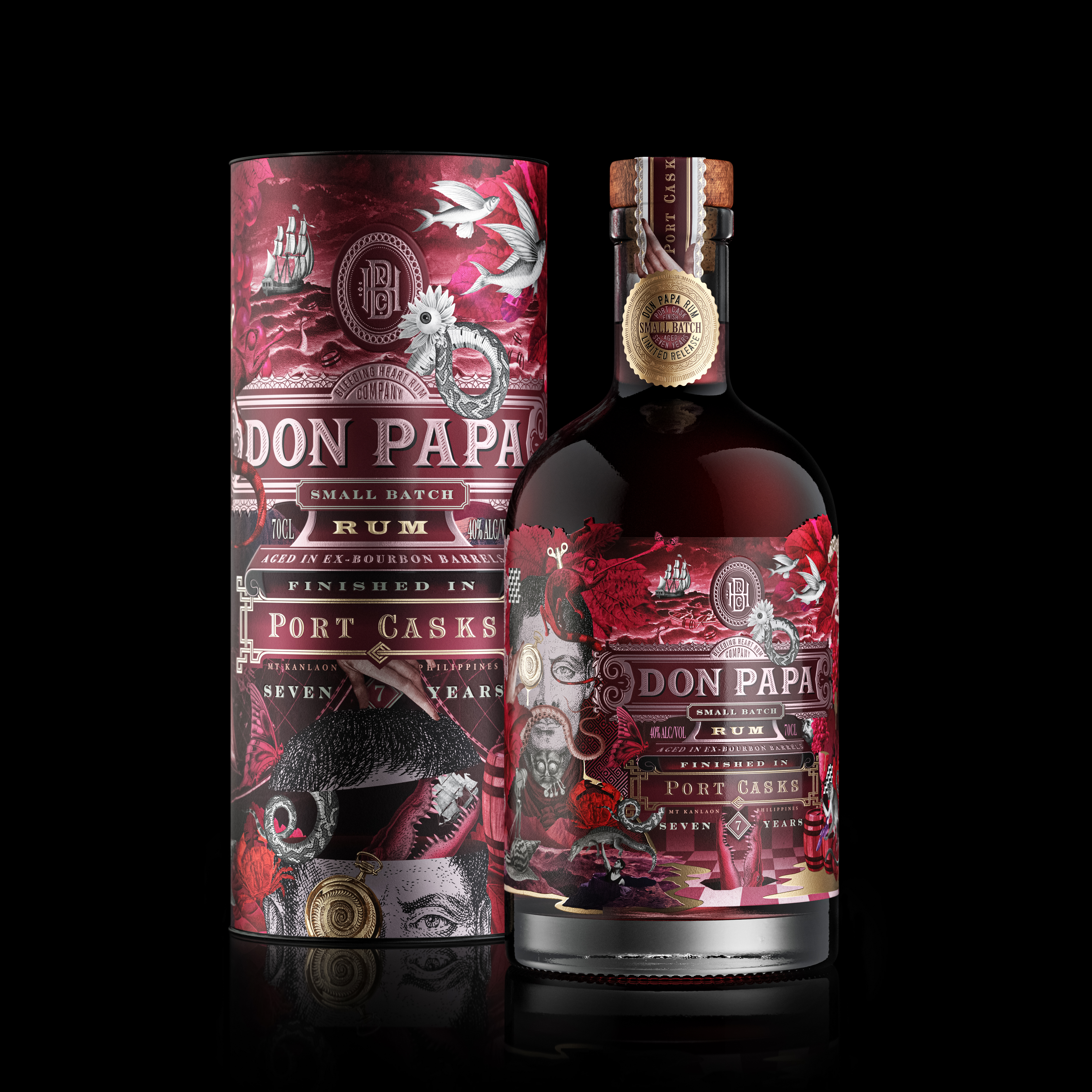 Il risultato finale è un nuovo Rum vellutato e complesso: Don Papa Port Casks Rum. Al naso, arrivano note risonanti e profonde di liquirizia, cioccolato fondente e zucchero muscovado; in seguito spiccano note di arance rosse, bacche rosse mature e una sottile nota fresca di baccelli di vaniglia.