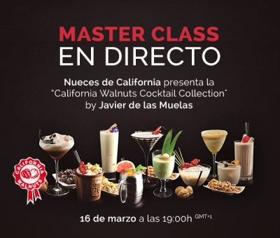 Javier de las Muelas te enseñará a elaborar recetas de cocktails y mocktails de la California Wallnuts Collection. Preparará en directo un L.A. Deluxe (mocktail), un Tango in California, un Surfin’ in Frisco y un San Diego Fizz.