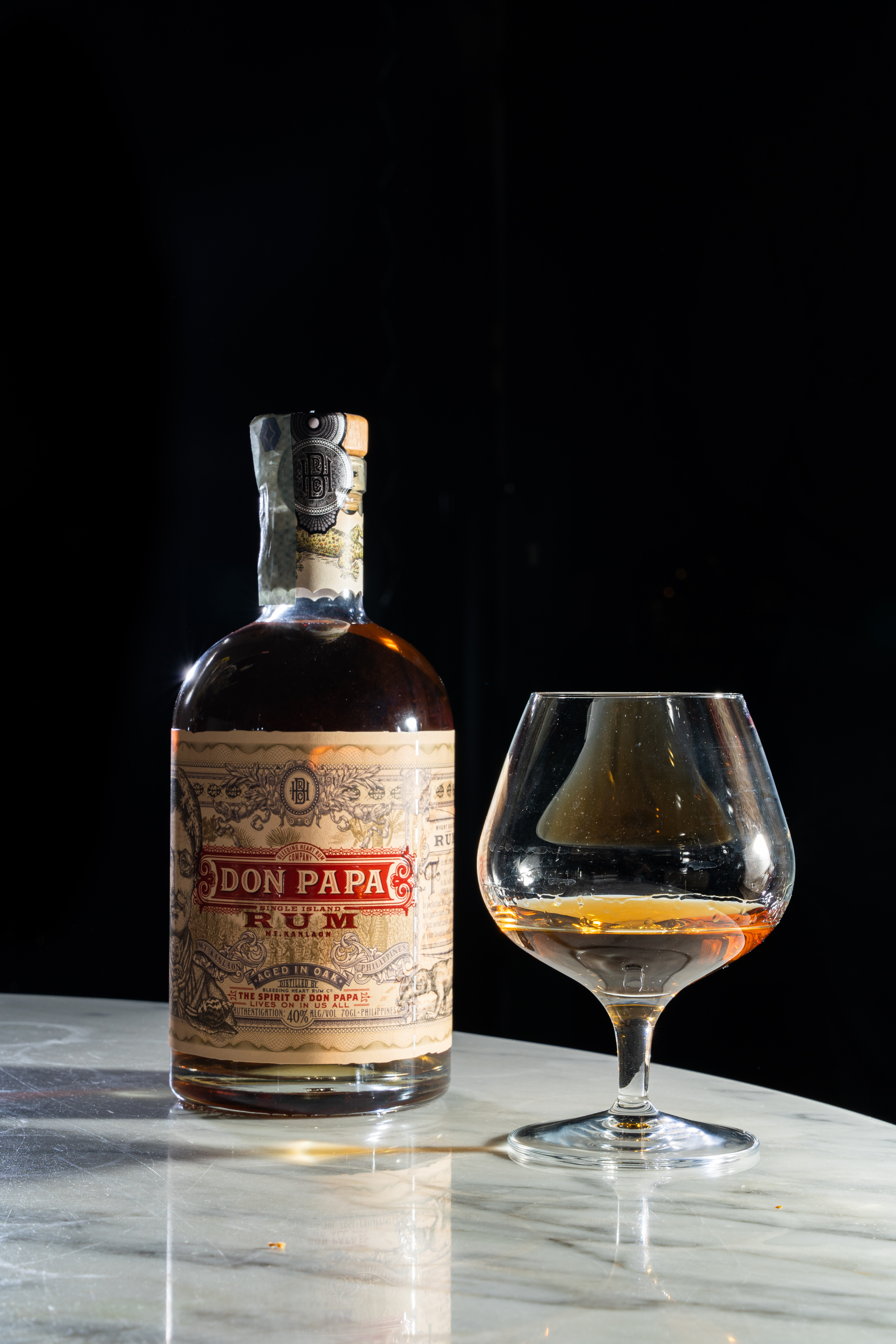 Don Papa è l’originale Single Island Rum dalle Filippine, ispirato da Papa Isio, eroe rivoluzionario e sciamano dell’Isola di Negros. Maturato ai piedi del Monte Kanlaon, Don Papa è invecchiato in botti di quercia ex-Bourbon ed ex-Rioja per ottenere una profondità di sapori, prima di essere realizzato alla perfezione dal Master Blender. Le botti Ex-Rioja donano quella secchezza che fa rientrare Don Papa nella categoria dei rum. Con note fragranti di scorza di agrumi, mango e nocciole arrostite al naso, il blend risultante delizia con sentori importanti di frutta, crema di vaniglia e toffee al palato. Il finale regala rotondità grazie ai sentori di quercia tostata delle botti. Come dicono a Negros, è un rum che merita di essere degustato liscio.