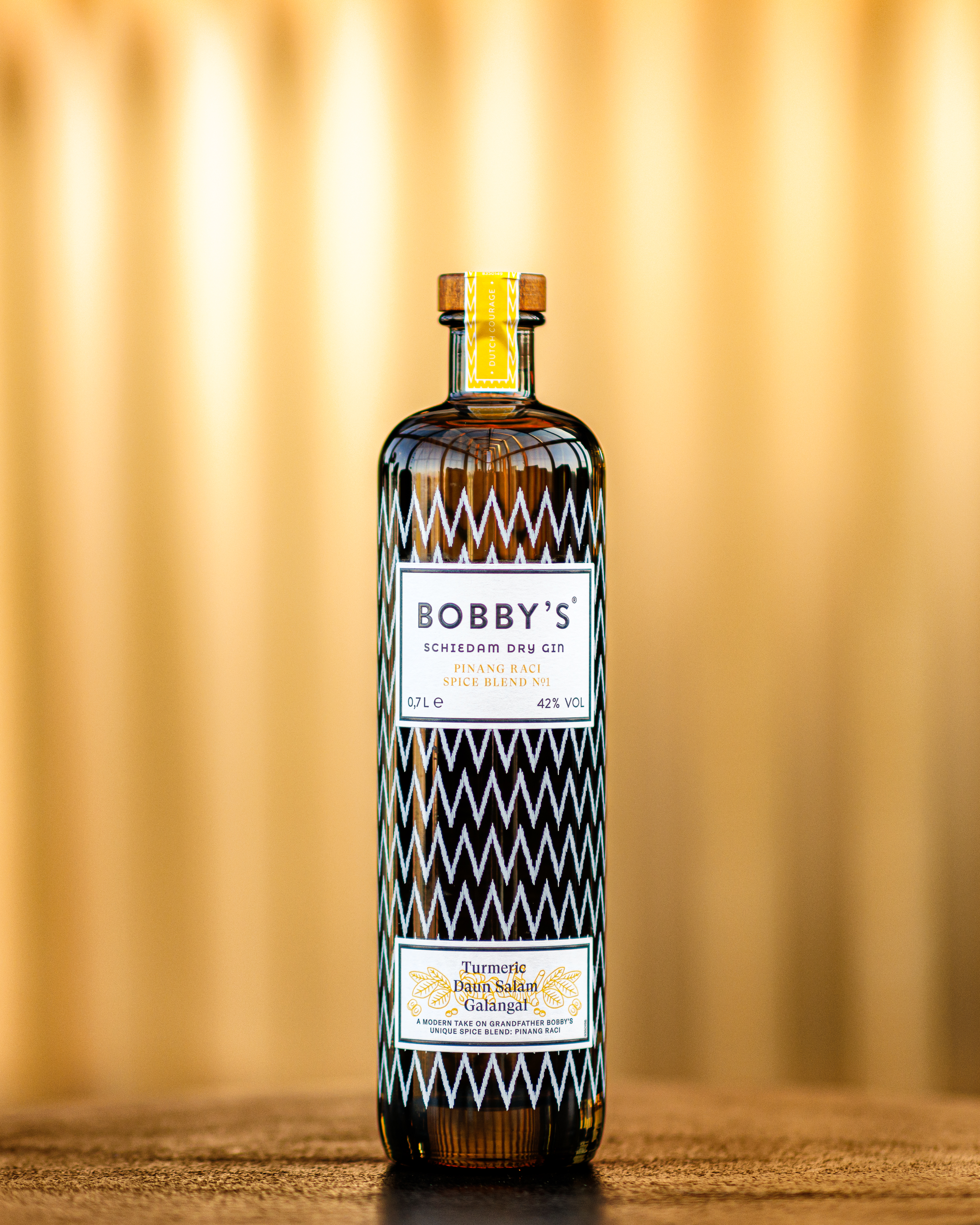 La miscela di spezie Pinang Raci No. 1 celebra i sapori della città natale di nonno Bobby, Naku, sull'isola delle spezie di Ambon. La diversità delle spezie indonesiane fatte per un viaggio alla scoperta delle combinazioni di sapori più sorprendenti. Dopo aver sperimentato oltre 70 campioni, è stata trovata l'ultima miscela di spezie Pinang Raci di Bobby's No.1. Un gin aromatico ricco di note vibranti e calde di foglie d’alloro, curcuma e galanga, supportate da zenzero, arancia dolce, chiodi di garofano, cannella, lemongrass, pepe di Cubeb, coriandolo e ginepro. Una versione moderna dell'esclusiva miscela di spezie Pinang Raci di nonno Bobby.
