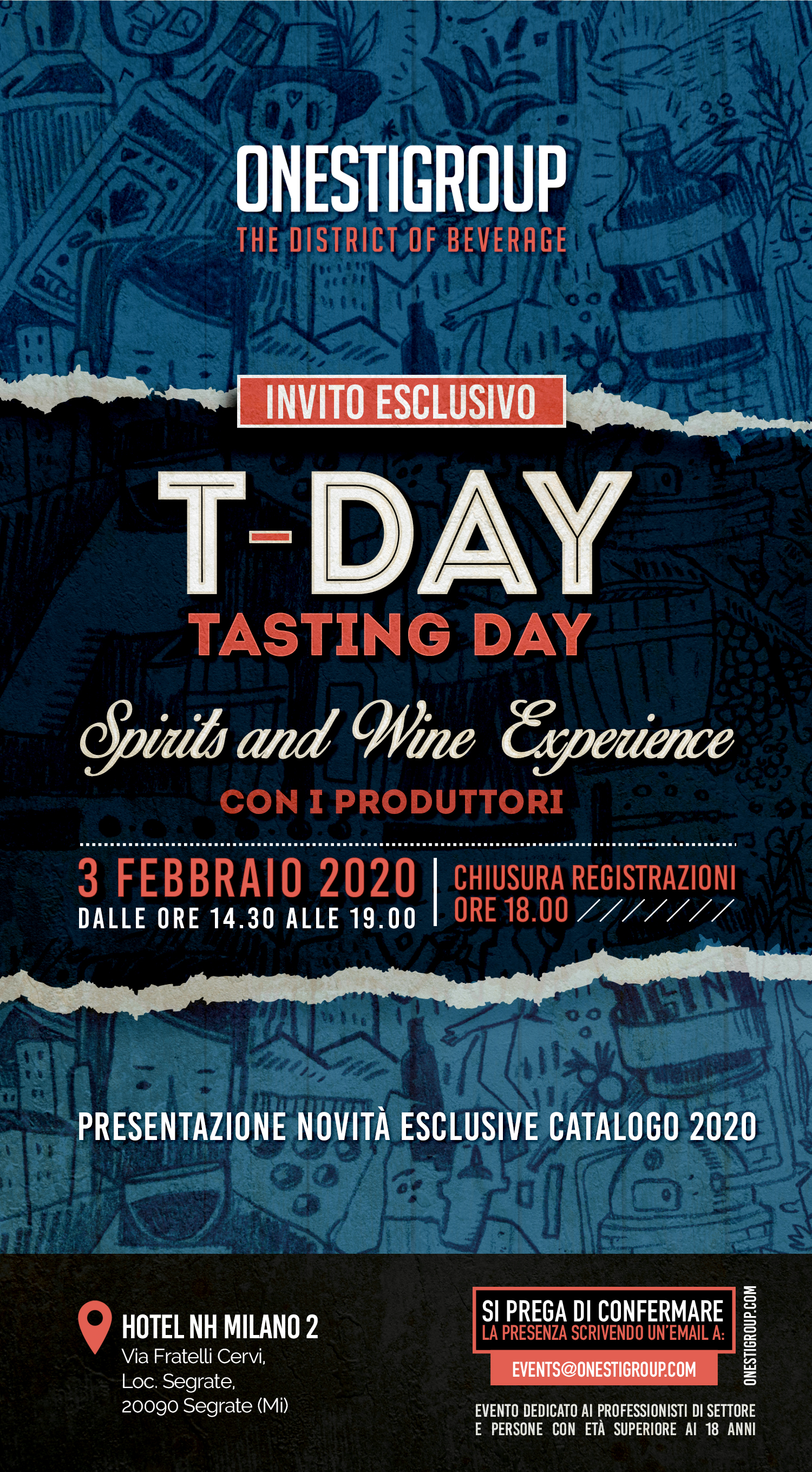 Grandi e tante novità nel portfolio vini e spirits 2020 di Onestigroup,  ampliato con nuovi brand premium in risposta alle esigenze dei palati più raffinati. Le esclusive novità verranno presentate in anteprima ai clienti durante l’edizione 2020 del T-DAY, il “ Tasting Experience Day”  che si terrà a Segrate (Mi) il 3 Febbraio.Dunte l’evento  i produttori di spirit e vini saranno a disposizione dei clienti per presentare i plus dei  nuovi prodotti e dei best seller del Gruppo e  guidarli in un'esclusiva tasting experience.