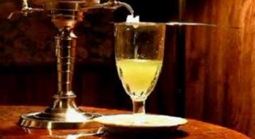 Il modo corretto per il servizio dell’Assenzio. Mai usare fuoco con l’Assenzio. Solo acqua fredda lasciata gocciolare molto lentamente.
